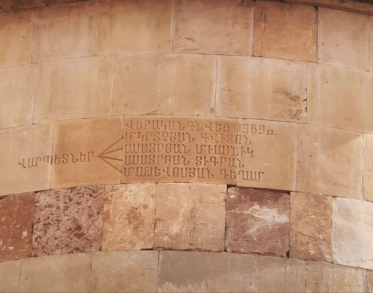 To mark this historical rebirth, on the northwestern side of the dome of the Surb Stepanos church, with a small and modest engraving, the names of the complex’s restorers are immortalized to this day: