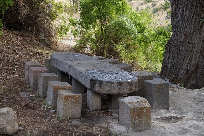 - Սեղանի հարթակը կազմված է բազալտե երկու մեծ հղկված կտորներից, որոնք հենվում են խորանարդաձև 6 սյուների վրա։